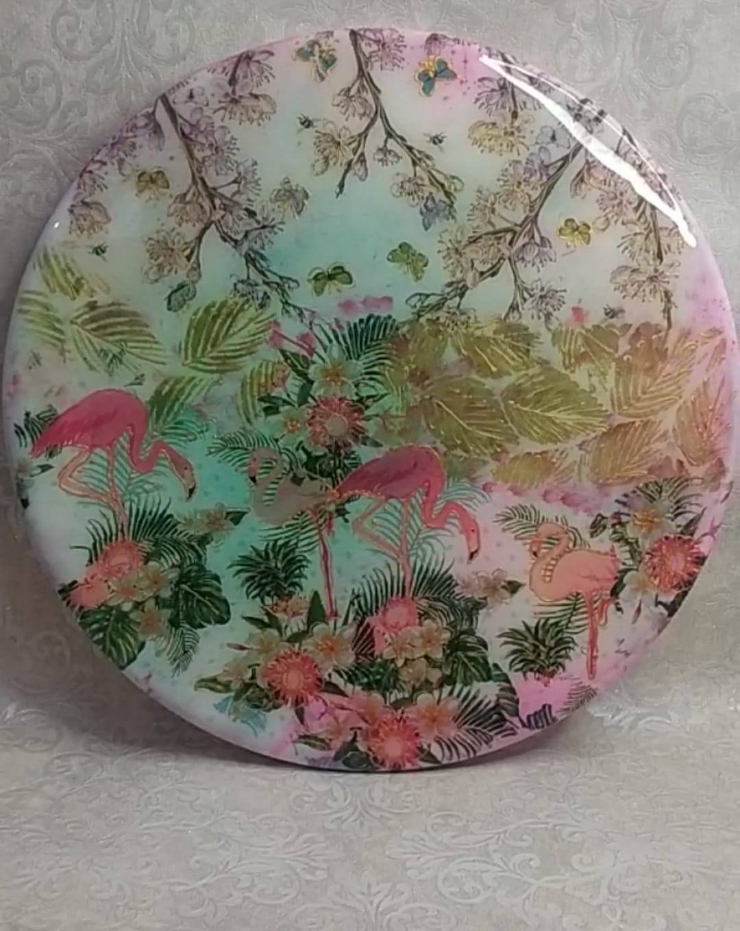 This stunning resin wall art is a celebration of nature — with blooming flowers, tropical leaves, and graceful flamingos. A unique, handmade piece that brings warmth and charm to your home
